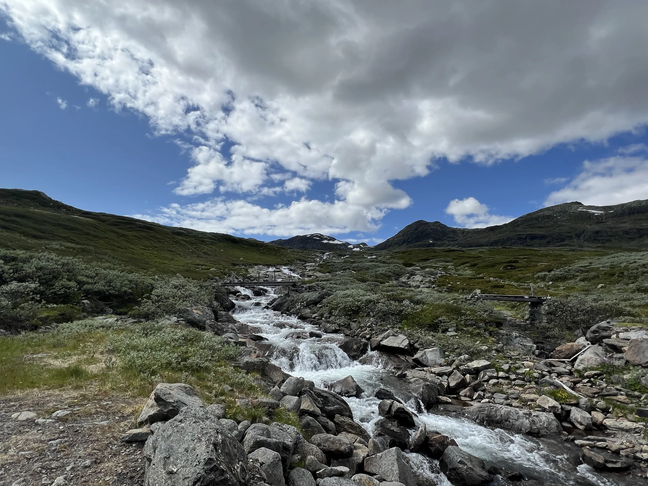 It is also very common to find wild jordbær along paths and streams, just like hiking in Montana. A welcome treat!