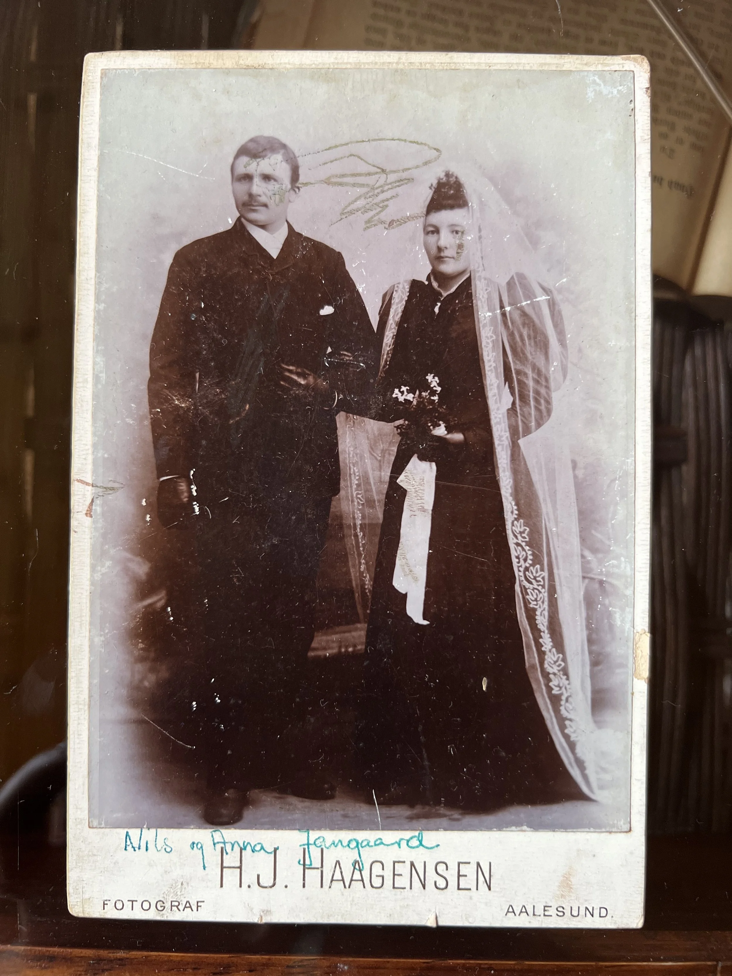 Fast forward to August, 2025. We find ourselves living in Norway with an invitation to visit a friend and his family in Åndalsnes. When looking at the map, we realized that we would not be far from the area that my distant relatives had a family farm on the island of Valderøya, just offshore of the beautiful city of Ålesund. So, Jenny kicked into action and sent a message on a Jangaard family Facebook page in hopes that someone would be able to share with us how we may be able to meet some distant family members or even visit the old farm site. Well…with what felt like minutes…we had a response for a woman named Caroline. She shares with us that she is living on the farm and that she would love to host us. Once we shared with her that I am a descendant of Arne Jangaard, her enthusiasm jumped drastically as we would be the first from this branch of the family tree to visit from the United States. Plans were made and questions danced in my head as we made the 5.5hr drive to the west coast.