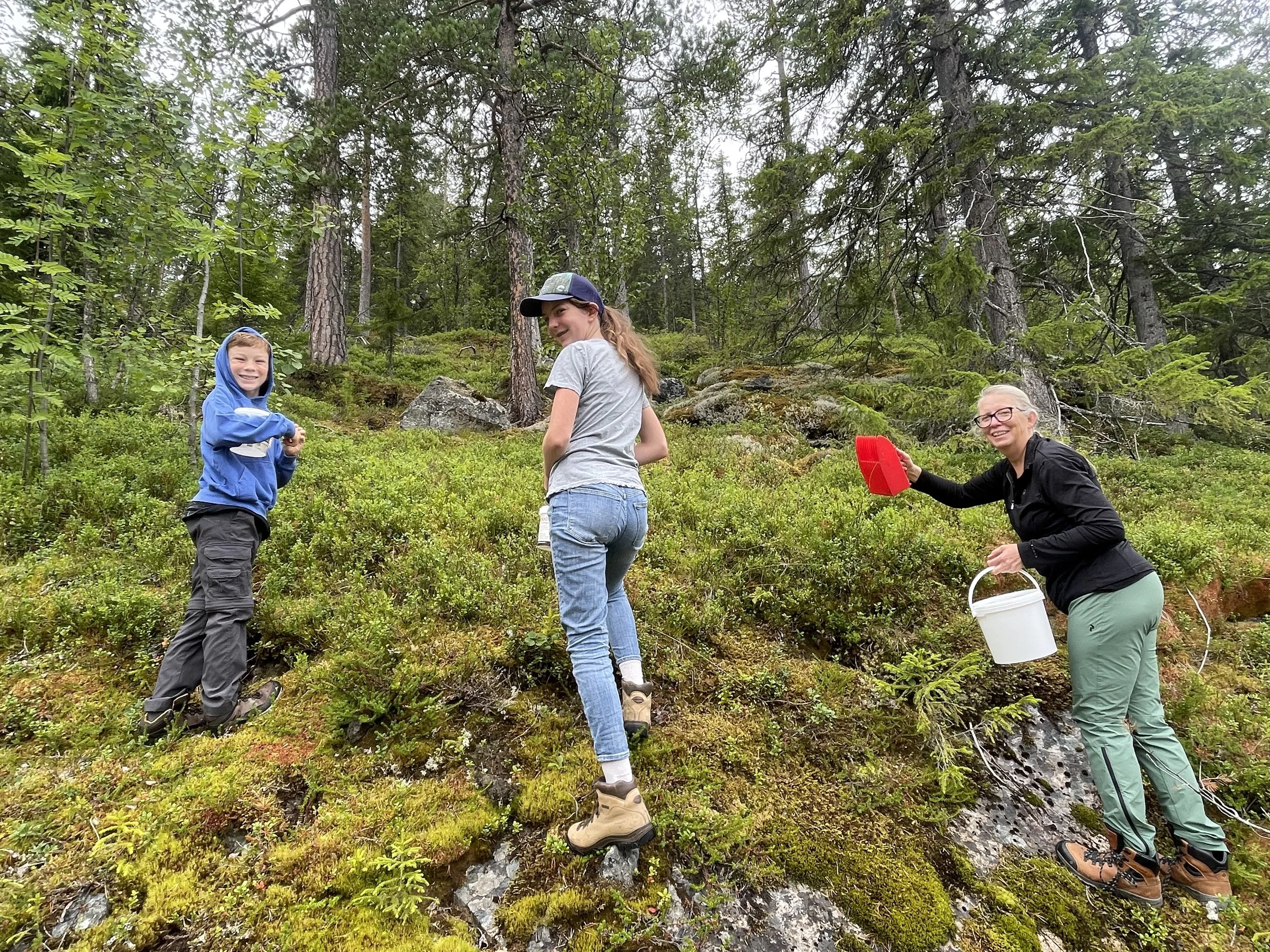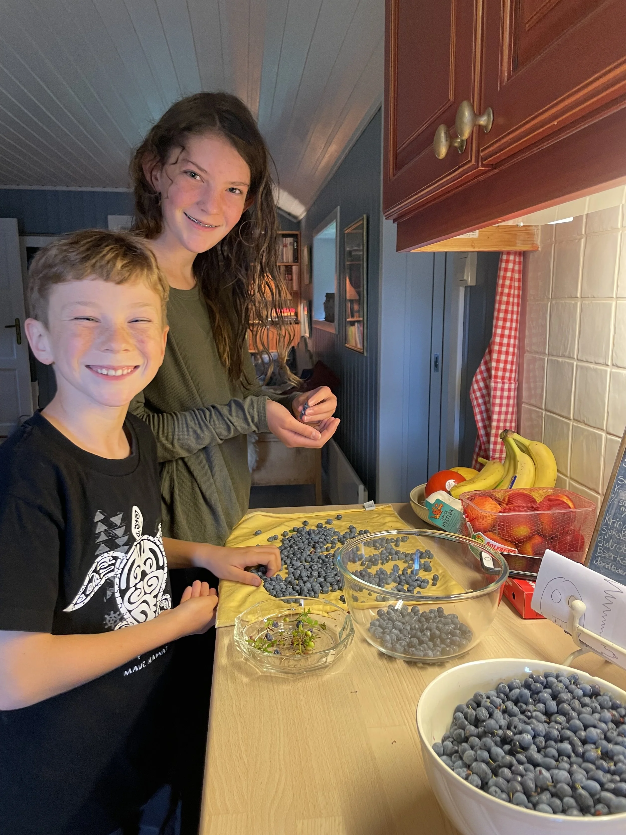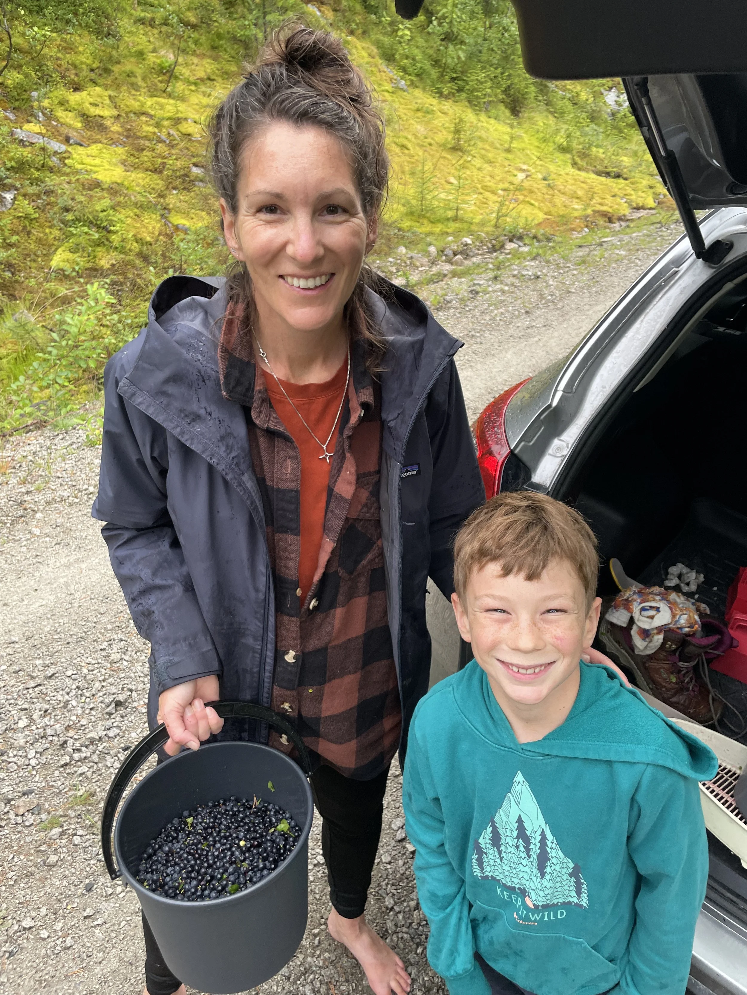 We ventured out as a family to a recommended location and ended up gathering 4.7 kilos of blåbær in 1.5 hours! We were off a dirt road and up a steep hill surrounded by bushes of berries dripping in fresh mountain rain.
