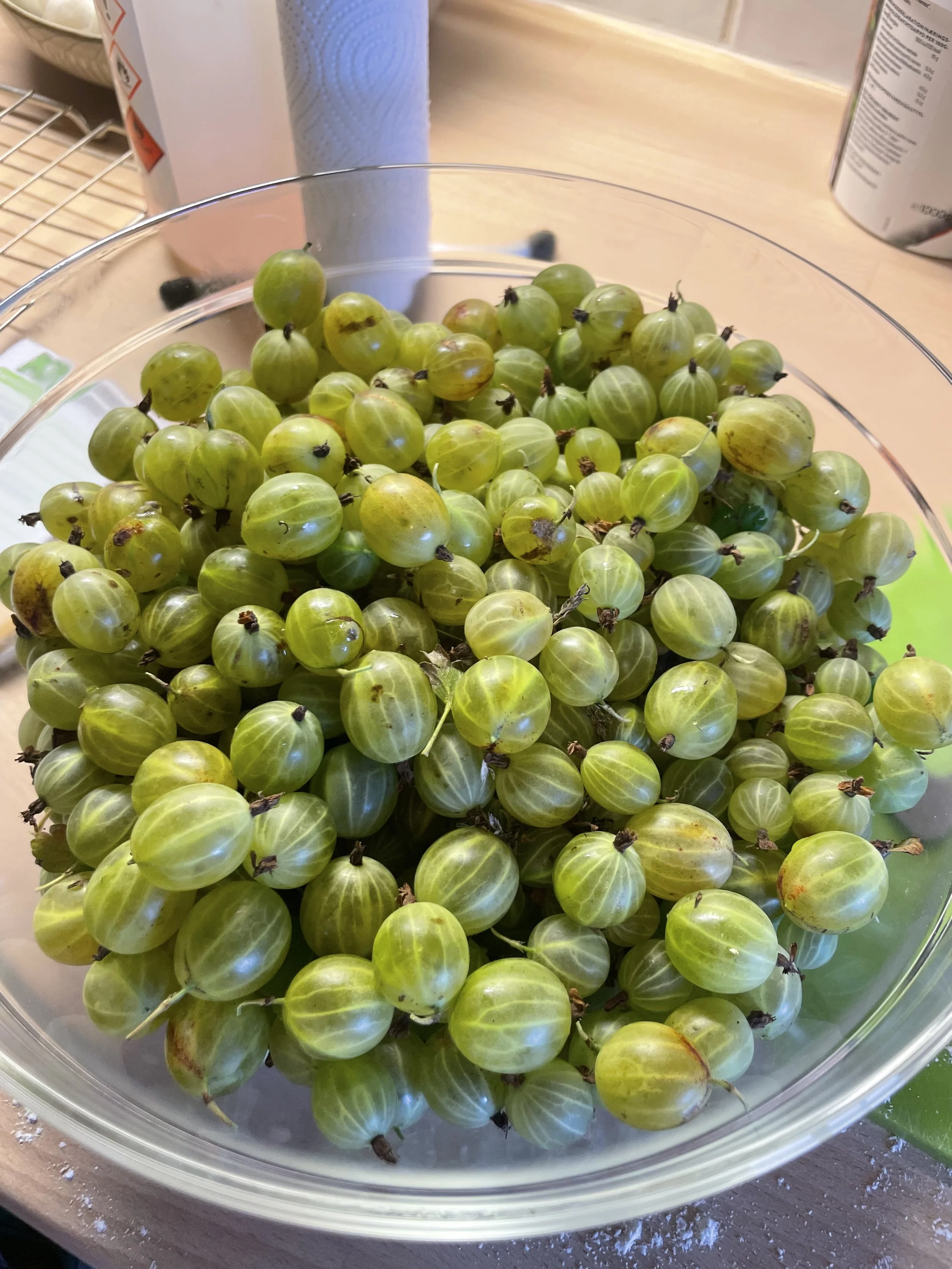 The neighbor who allowed us to harvest from their rips orchard, also had several stikklesbær bushes. Gooseberry, is not very commonly cultivated in the U.S., at least according to my experience. I’ve picked them off bushes while hiking in Montana, and had a worm-infested plant in my mother’s garden (yuck). I have a friend in Montana that had a bush or two come with their house, but other than that, its not a common berry found on restaurant menus.