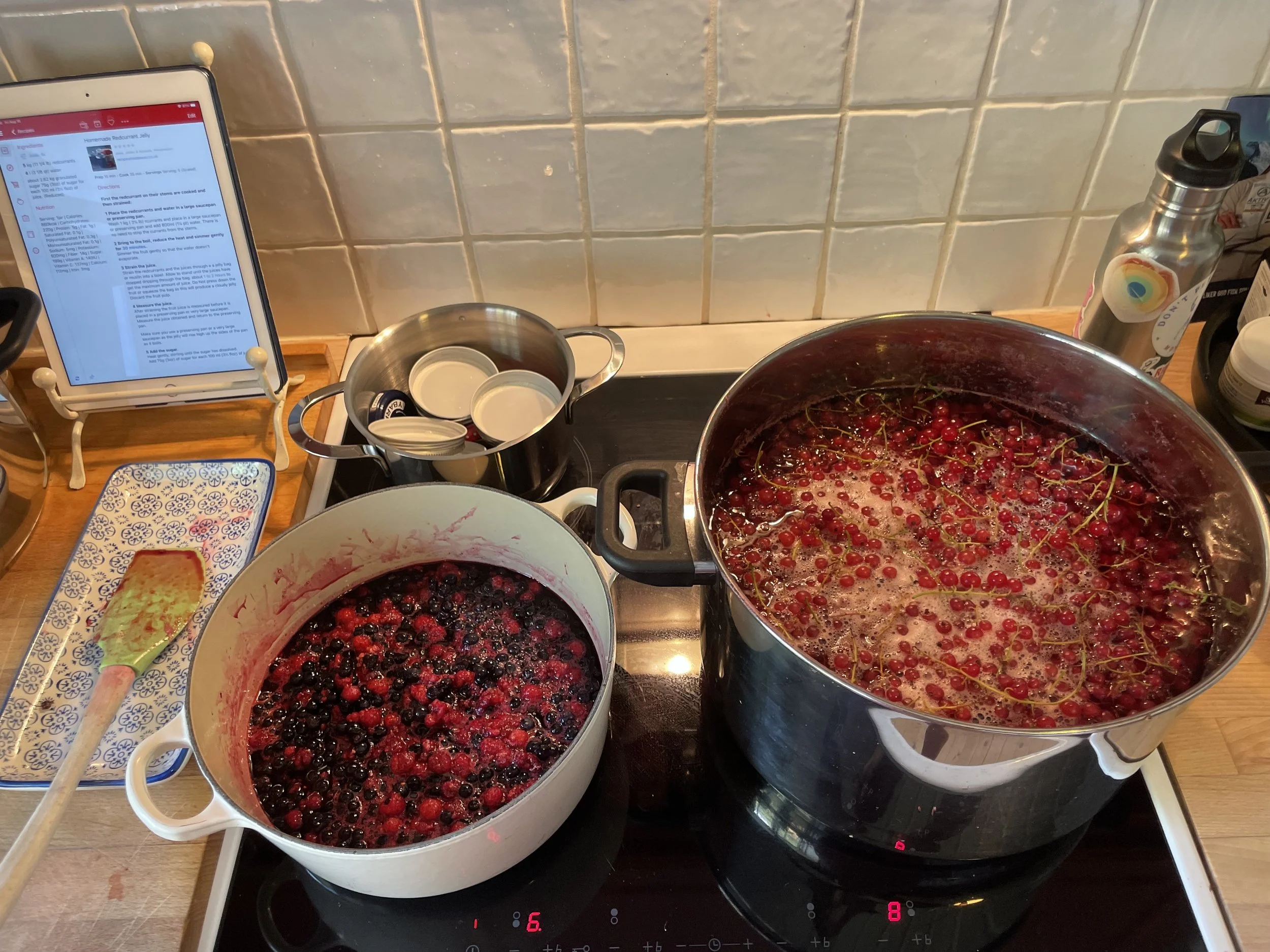 We picked about 15 kilos of rips… which is insane. Just because you can, doesn’t mean you should. Remember, what you harvest, you process. BUT, I juiced it all (thank goodness you don’t have to de-stem these berries), added sugar and cooked it all down in to jelly. The first batch was pretty straight forward, but with 8L of liquid on the second batch, this process took forever, especially since I reduced the sugar. However, the juice cooked down in to a rich and tart jelly that we all quite enjoy! Its darker than normal and tastes great on baked goods and with meat. Yum!