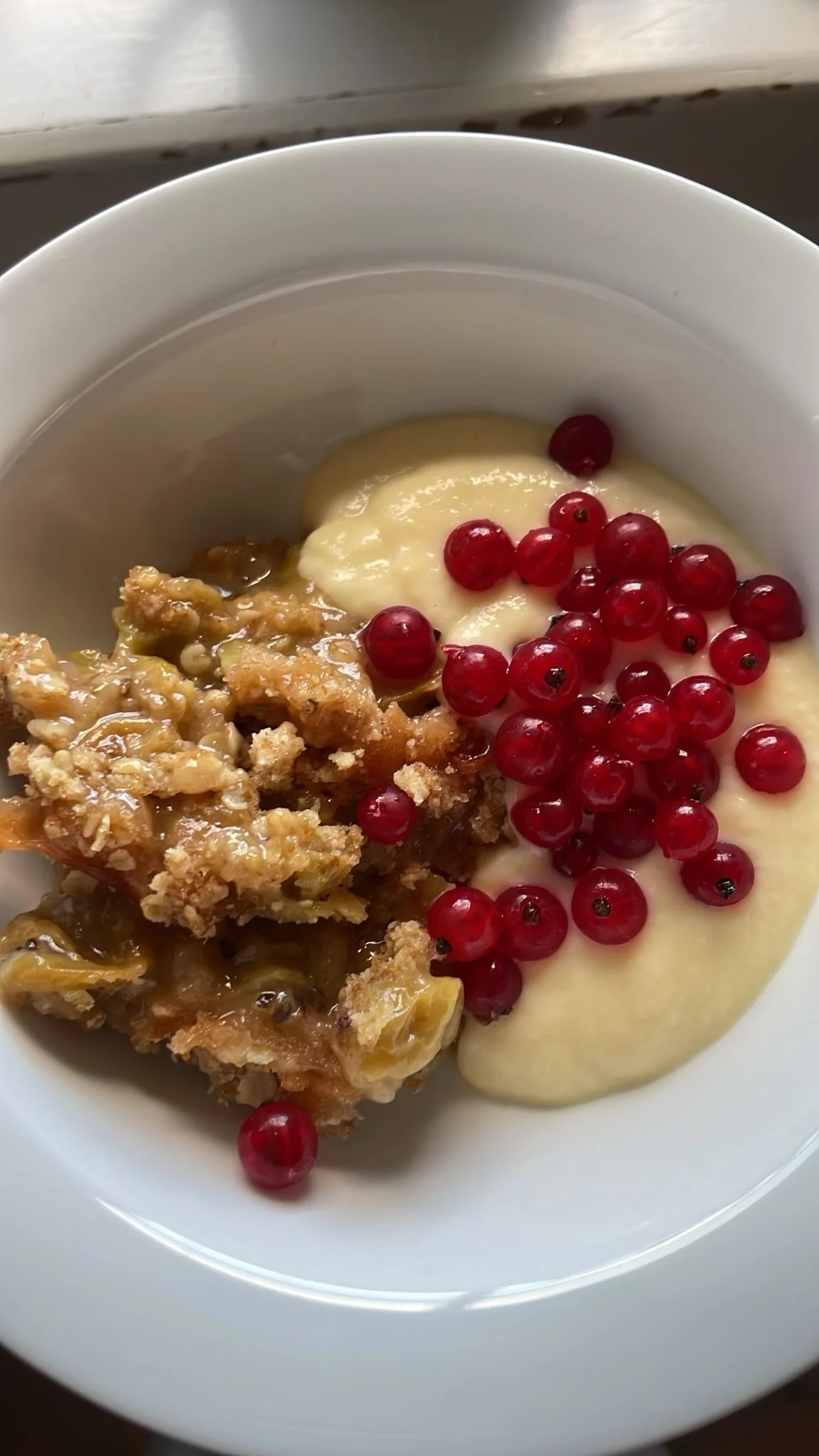 I also learned from a new friend that eating fresh rips with vanilla cream is quite popular. I asked if vanilla cream was the same as custard, but she had never heard of custard and typically buys the cream. My English roots were shaken… I didn’t know it was possible to not know what custard is! With that being said, I made some custard and served it with the rips and it was truly wonderful. I found out that this a traditional German dish. Now my English and German sides can be content.