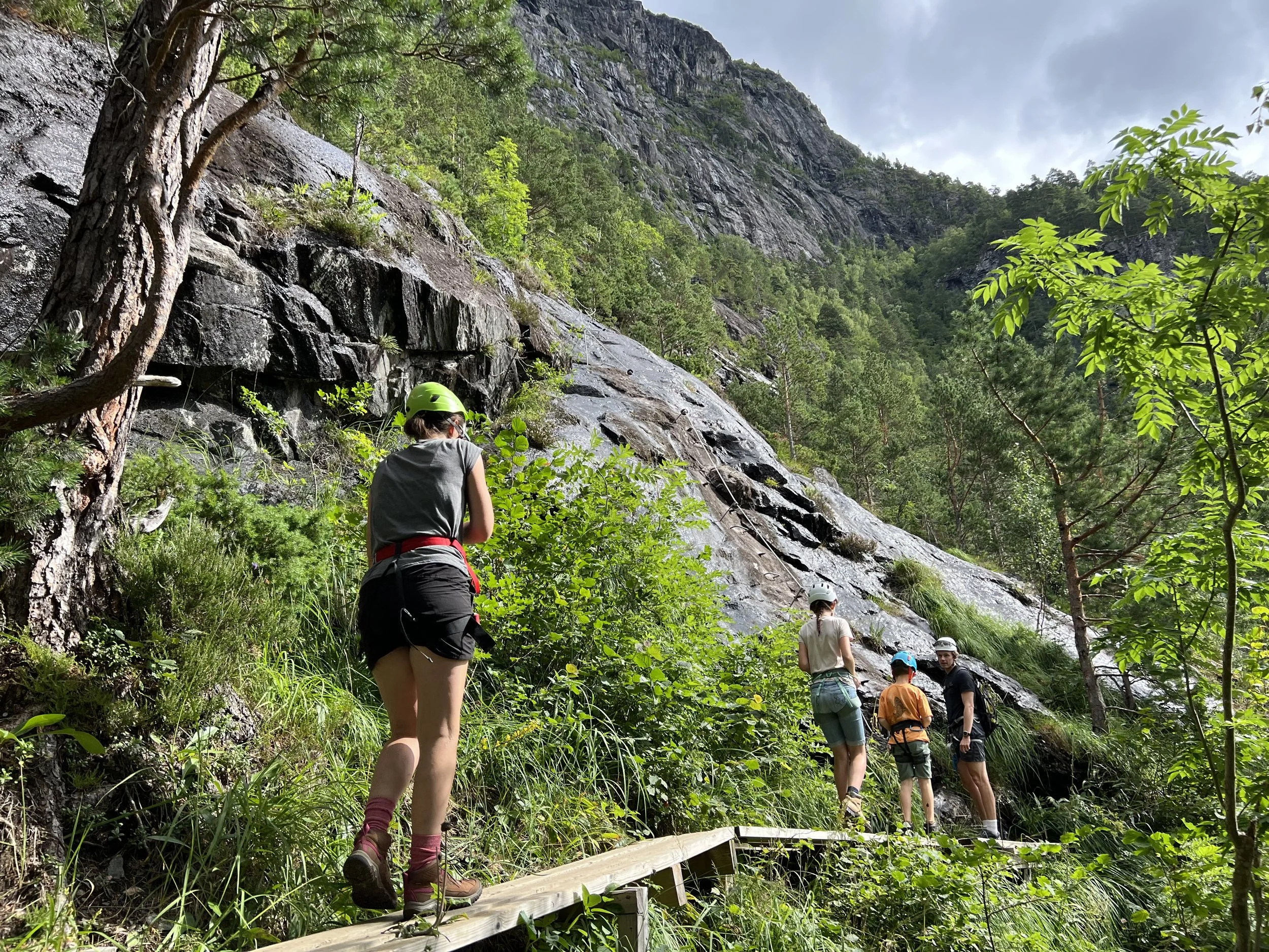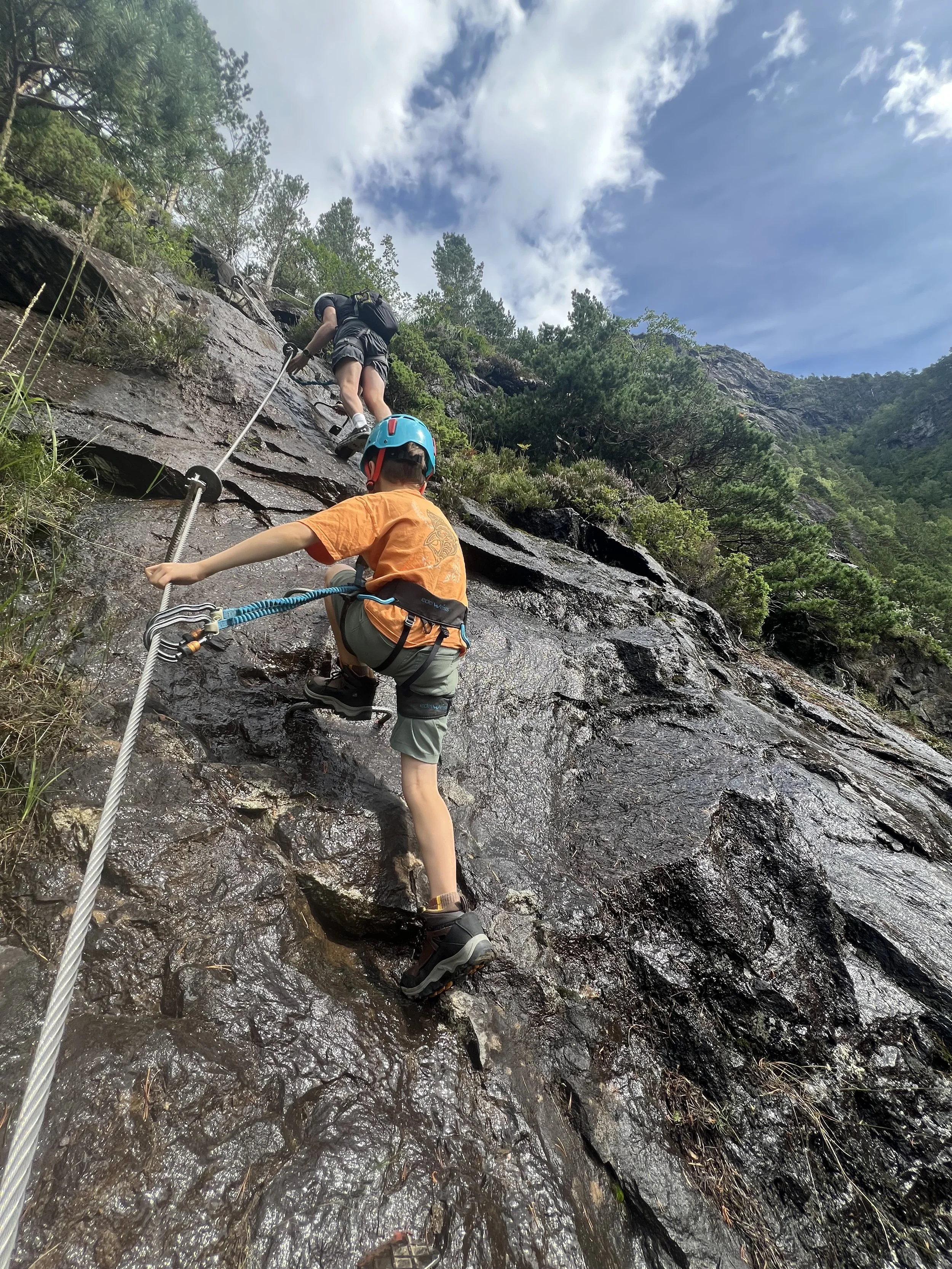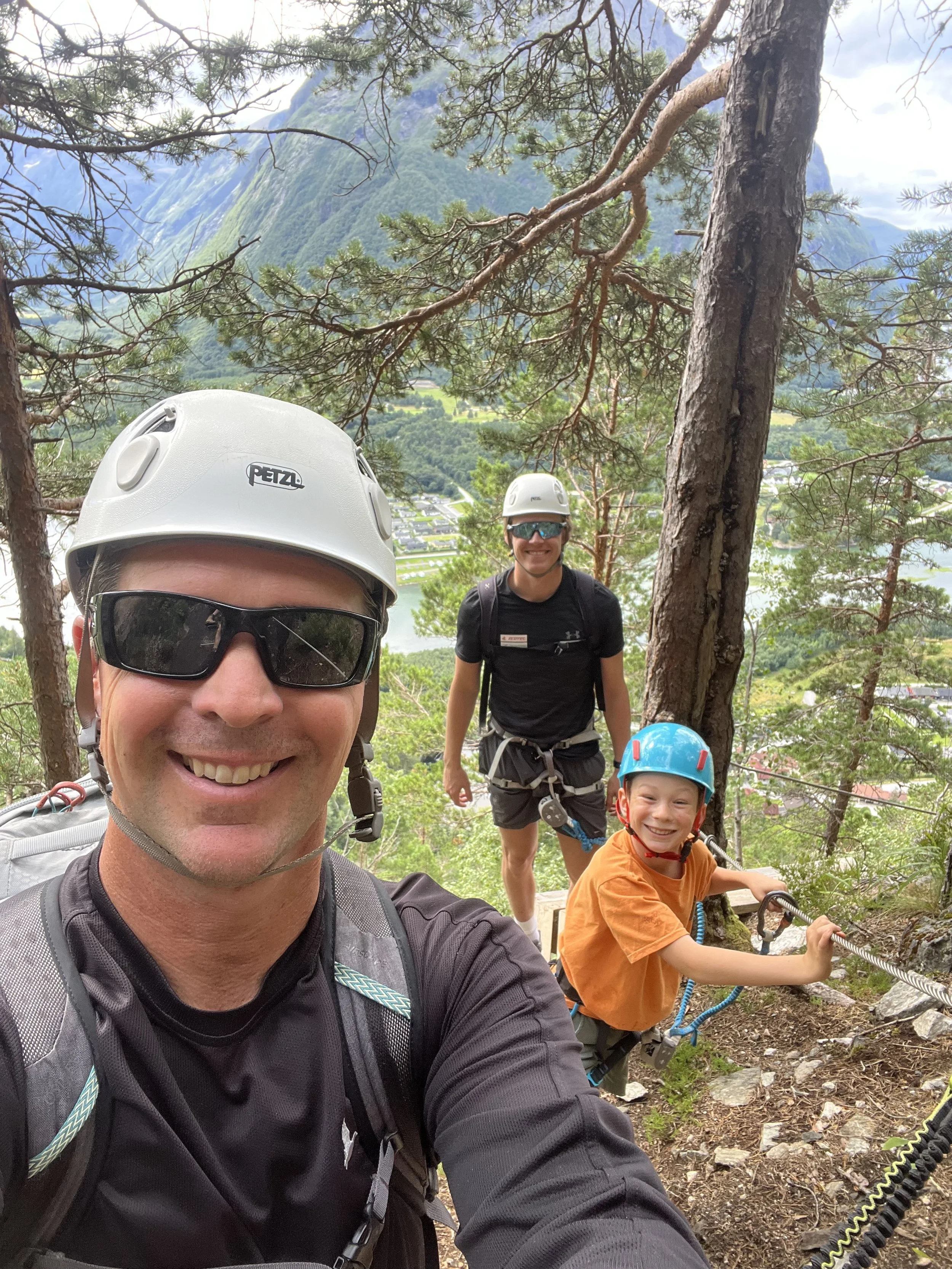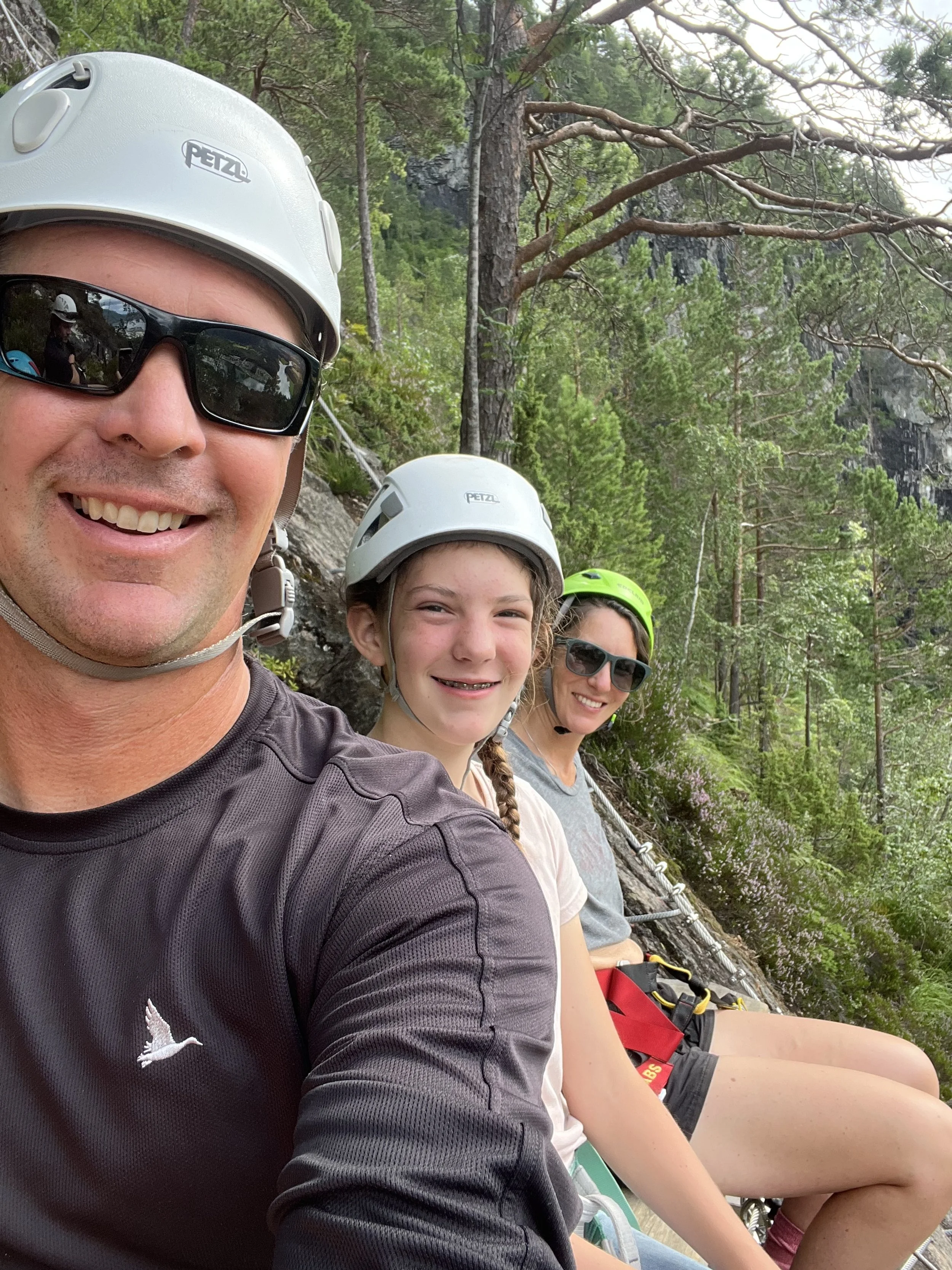 We woke to sunshine and mild temps. Isak had secured harnesses and helmets for all of us. With just a short walk from their front porch, we were at the base of the mountain and ready to make some memories that will not soon be forgotten.