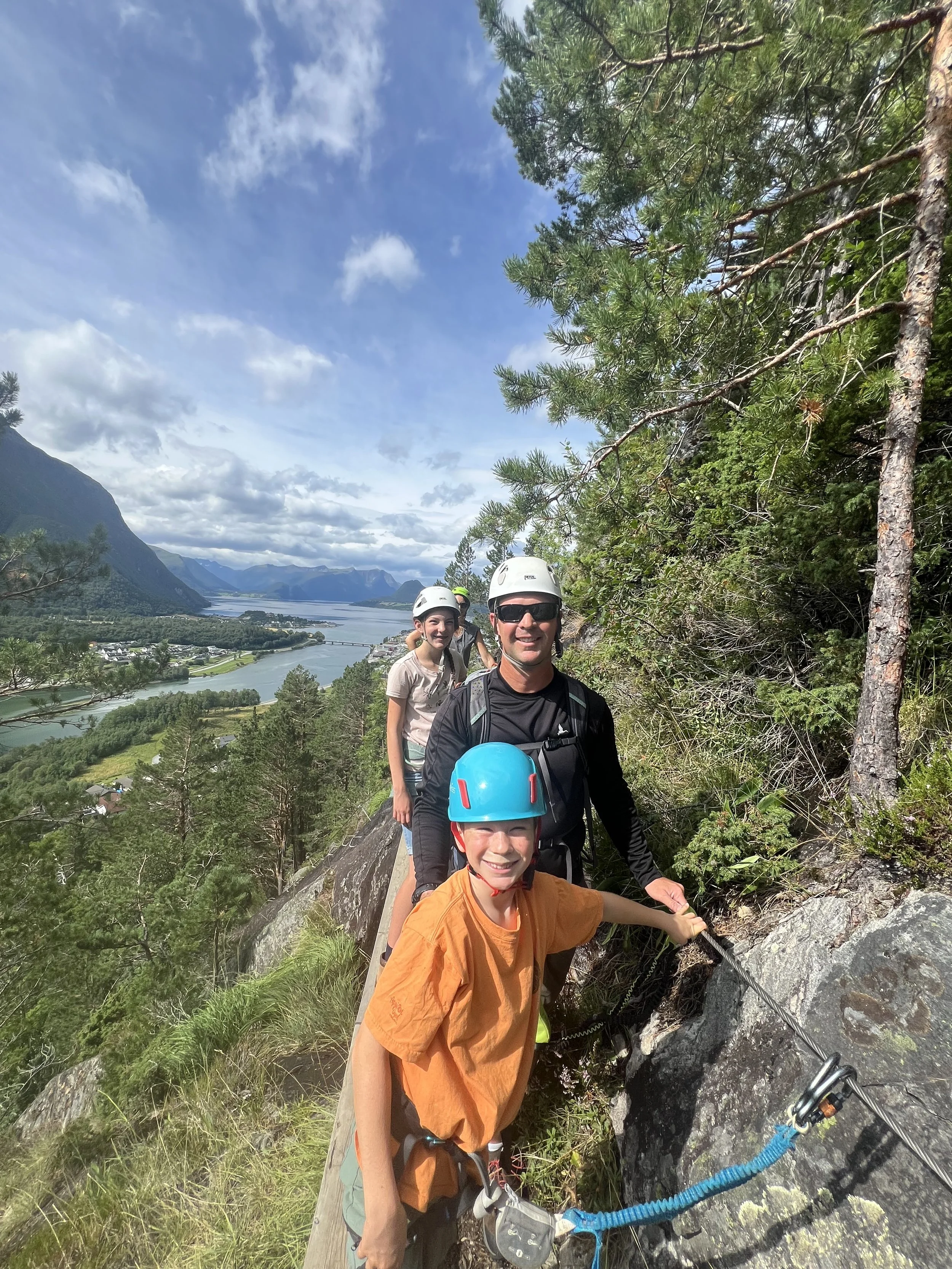 The Via Ferrata was a turning point for me; for our time in Norway. Having arrived only a month before, I was both delighted and uncertain about all the newness of this life we were living abroad. I think its strange that a steep pitch up a rock face brought me into the peace I had been looking for. I needed to feel assured in some way, that we were in the right place at the right time. Sitting on a wood bench, attached only by carabiners and overlooking the valley far below, was exactly what I needed to feel at ease. I reflected on a summer in college when I worked at a summer camp in California. During that time, I had to overcome a fear of heights and learn many new and foreign things as a challenge course instructor. The joy of that summer returned to me in the hours we spent climbing and clipping in. Watching our kids focus and overcome fear on such an obstacle was one of the best sights I’ve ever taken in. The climb was a metaphor: we are in Norway to adventure boldly and bravely, with joy and resilience - “Further Up and Further In!” Fear is not a worthy tradein for faith. Ever. I’d rather scale the mountain, together with my family, facing danger and the unknown, than to sit and envy the people who have guts enough to do the extraordinary. I was and am filled with gratitude for this experience produced by our friend, Isak. One of the best days of my whole life; Via Ferrata was just what I needed to experience our time in Norway with the confidence of belonging.